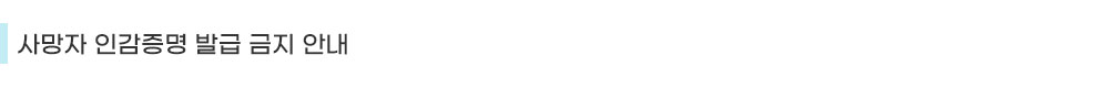 가. 안내 사항 : 당사자가 사망하였는데도 인감증명을 발급 받을 경우에는 관련법에 의하여 처벌됨.